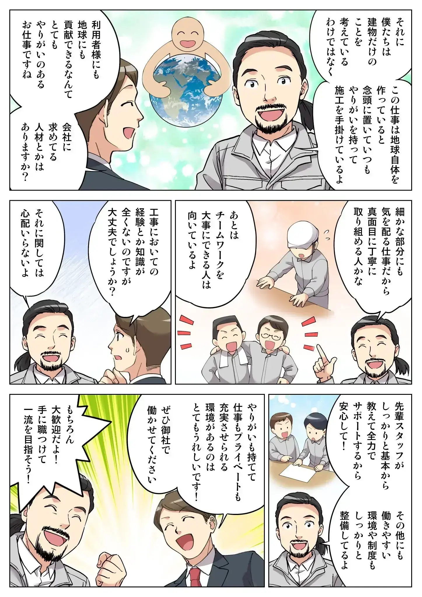 アルプス工業が考えているのはお客様や建物のことだけではありません。日々の仕事が地球自体を作っていると念頭に置くことで、やりがいを持って施工に尽力することができています。